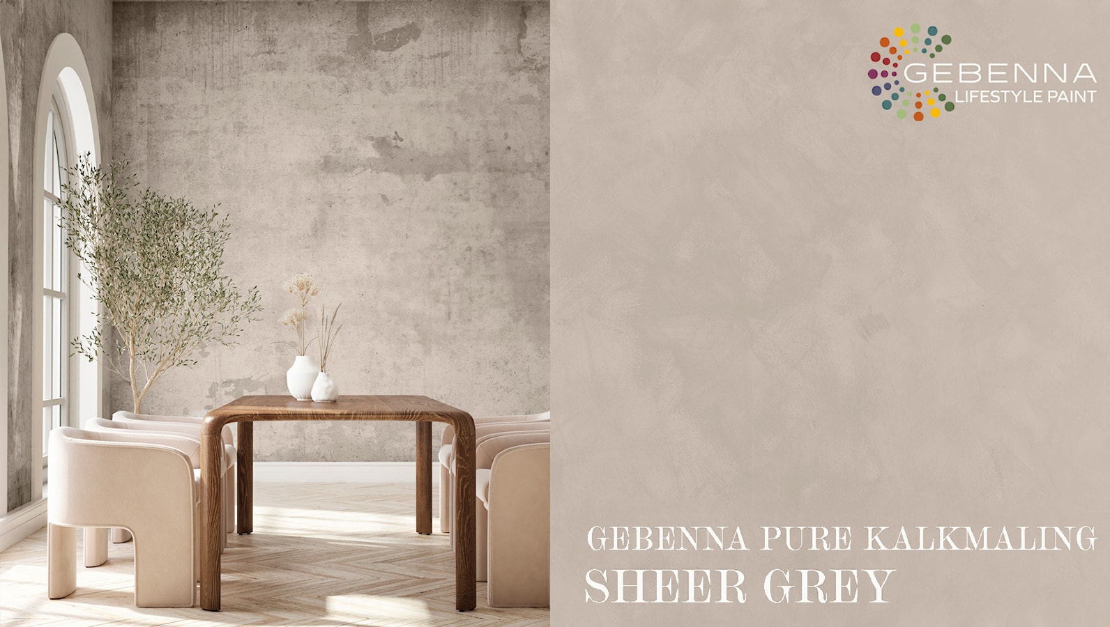 Sheer Grey forener det bedste fra grå og beige i en blid og afdæmpet tone, som er både lys og varm. Denne kalkmaling skaber en diskret og sanselig væg med naturlig tekstur og dybde. Sheer Grey er ideel som basefarve i stue, kontor eller soveværelse og står flot sammen med både kolde og varme farver. Den passer perfekt til naturmaterialer, hvide detaljer og dæmpede nuancer. En raffineret og alsidig farve til dig, der ønsker et moderne, men roligt udtryk.
