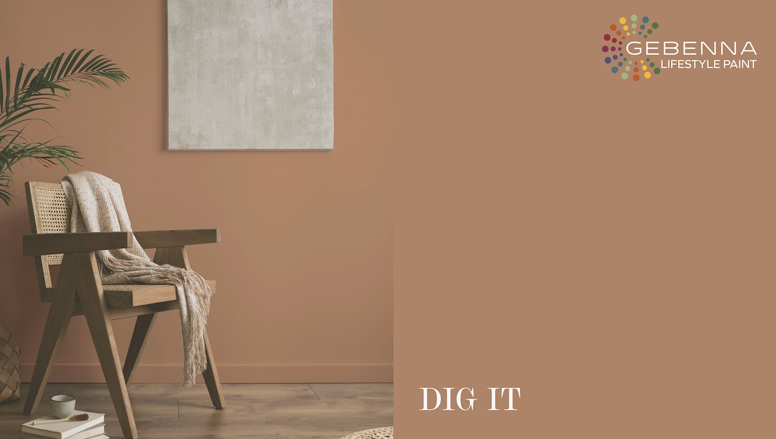 En lys brun maling med rød-orange undertoner. Dig it fremstår fløjlsblød og mat i udtrykket, og vil skabe en skøn og kordnær atmosfære, der hvor du maler med den.