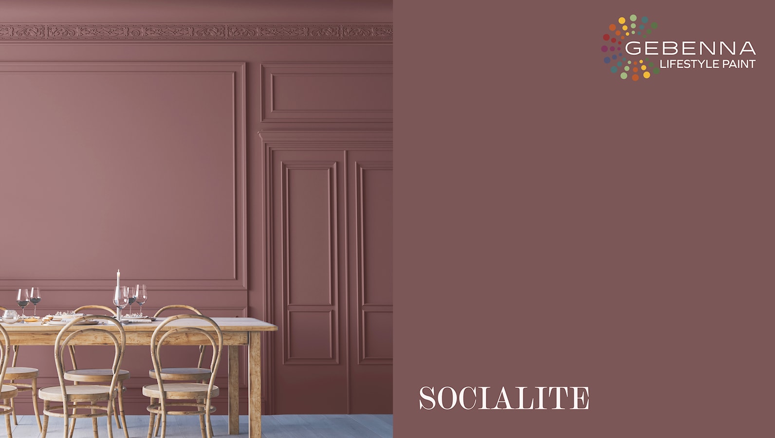 Socialite er en mørk støvet gammelrosa maling, som i det rette lys vil minde om en gammelrosa. Farven har bløde og feminine rosa undertoner og skaber en eksklusiv og harmonisk atmosfære.