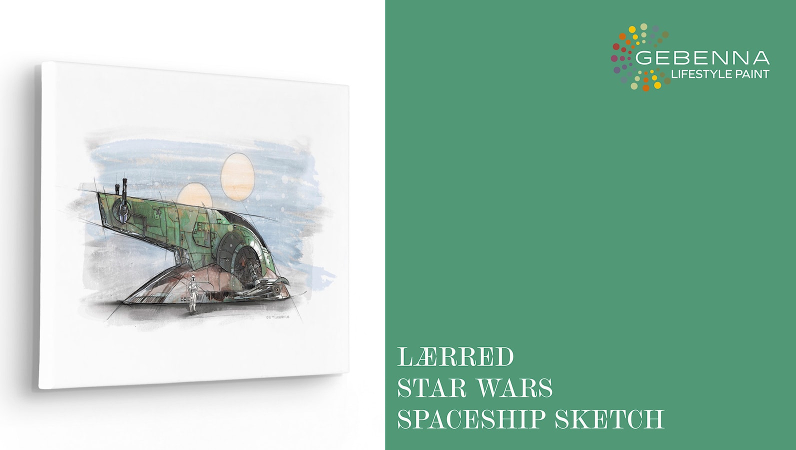 Et stykke galaktisk historie – det legendariske Slave I, Boba Fetts ikoniske rumskib, træder frem mod en betagende baggrund med to sole, der minder om Tatooines vidtstrakte landskaber. Den akvarellignende stil og de bløde farver giver billedet et kunstnerisk, men samtidig futuristisk udtryk. Ideelt for Star Wars-fans, der ikke kun elsker eventyr, men også ønsker at bringe skønheden og designet fra Star Wars-universet ind i deres hjem.