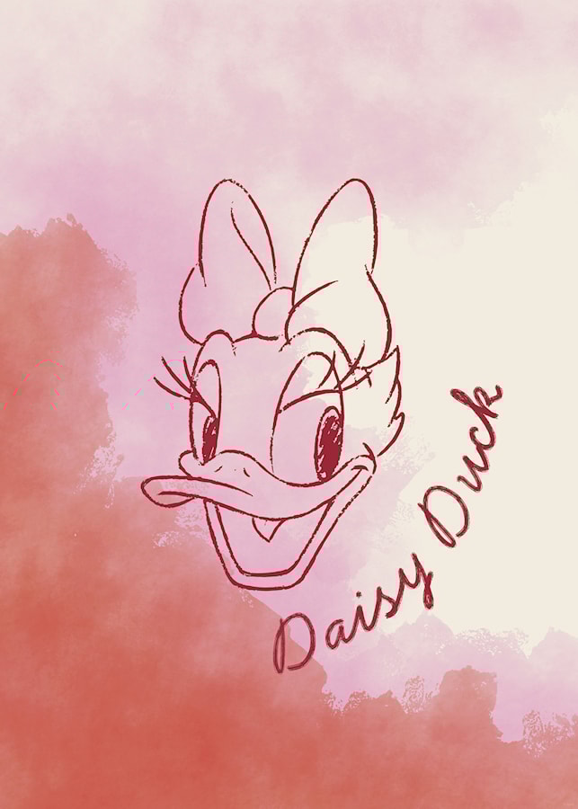 Et kunsttryk, der perfekt fanger Andersines charmerende personlighed! Med en elegant skitse af hendes glade ansigt og den markante tekst ‘Daisy Duck’ på en blød lyserød baggrund udstråler det ren Disney-magi. De sarte nuancer og det minimalistiske design gør dette kunstværk til et stilfuldt blikfang i ethvert rum – ideelt for fans, der elsker Daisys selvsikkerhed og stil.