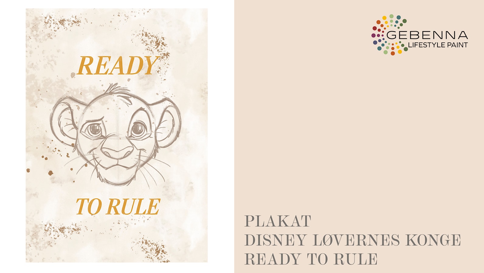 Et charmerende kunsttryk af en ung Simba, der fanger modet og beslutsomheden hos en kommende konge. Den kunstneriske skitseeffekt kombineret med den subtile baggrund giver designet et elegant og tidløst udtryk. Ordene ‘Ready to Rule’ motiverer og inspirerer – perfekt til små løver, der drømmer om store eventyr. Et stærkt blikfang til ethvert rum!