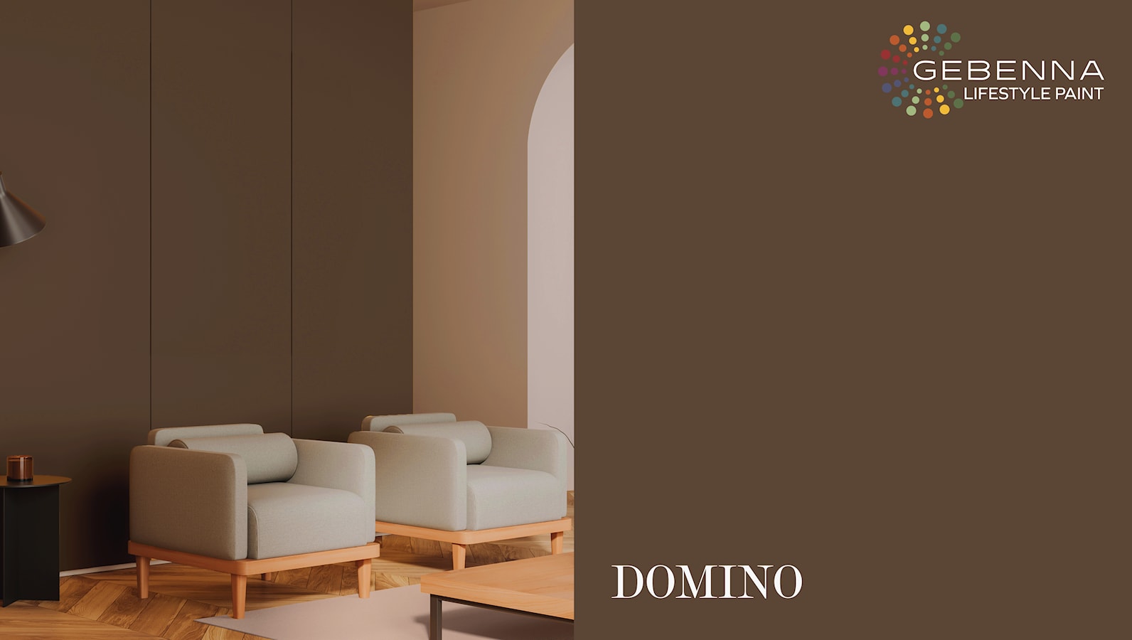 Domino er en mørk og dyp brun fargemaling, med varme gylne undertoner og er perfekt som aksentvegg i eksklusivt interiør.