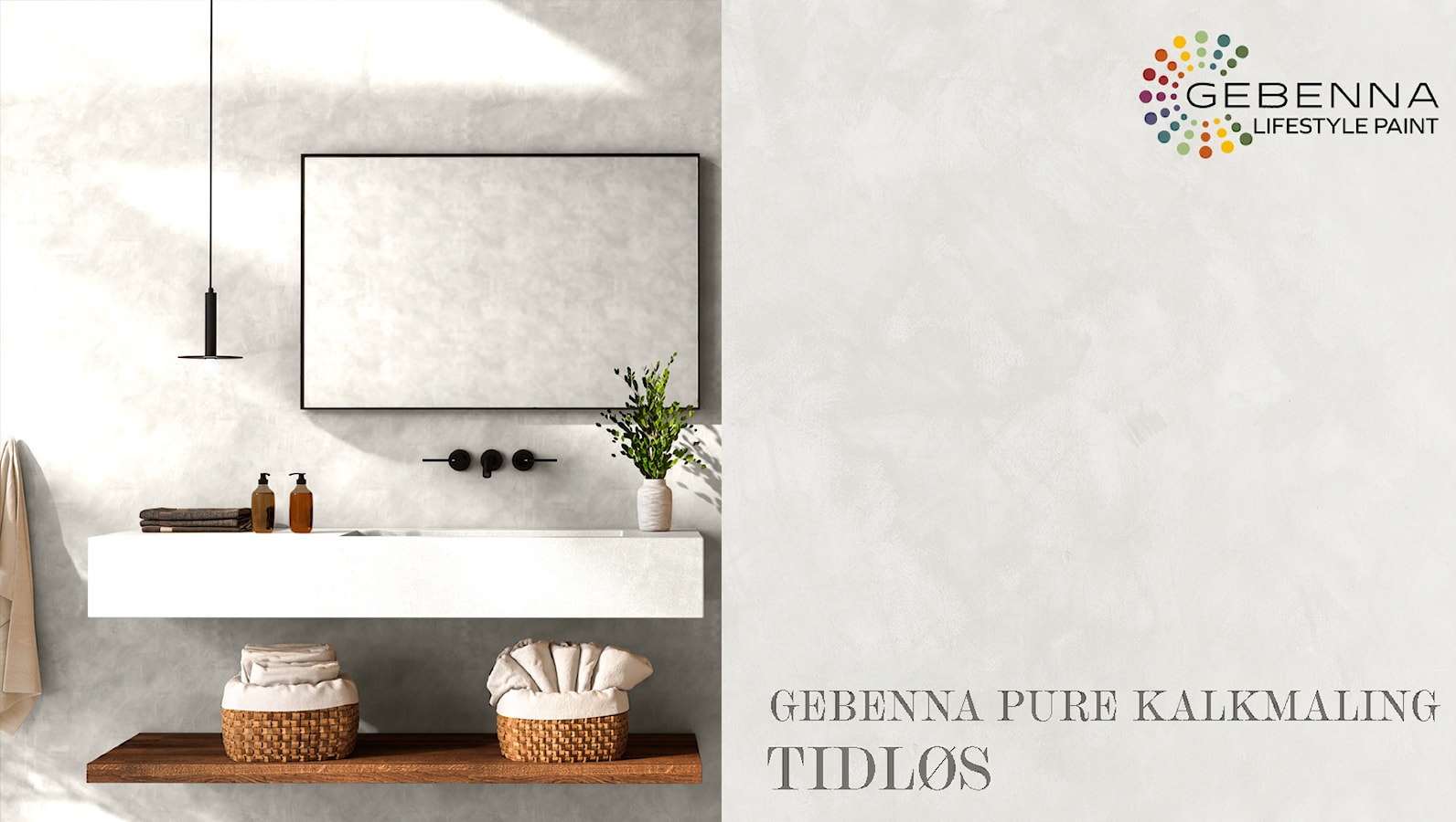 Inviter naturens farger inn med kalkmaling fra Gebenna. Kalkmalingen er produsert av naturlige materialer og skaper et vakkert, naturlig spill på veggen. Den myke og matte teksturen fremhever de naturlige elementene og skaper en følelse av trygghet, ro og balanse.