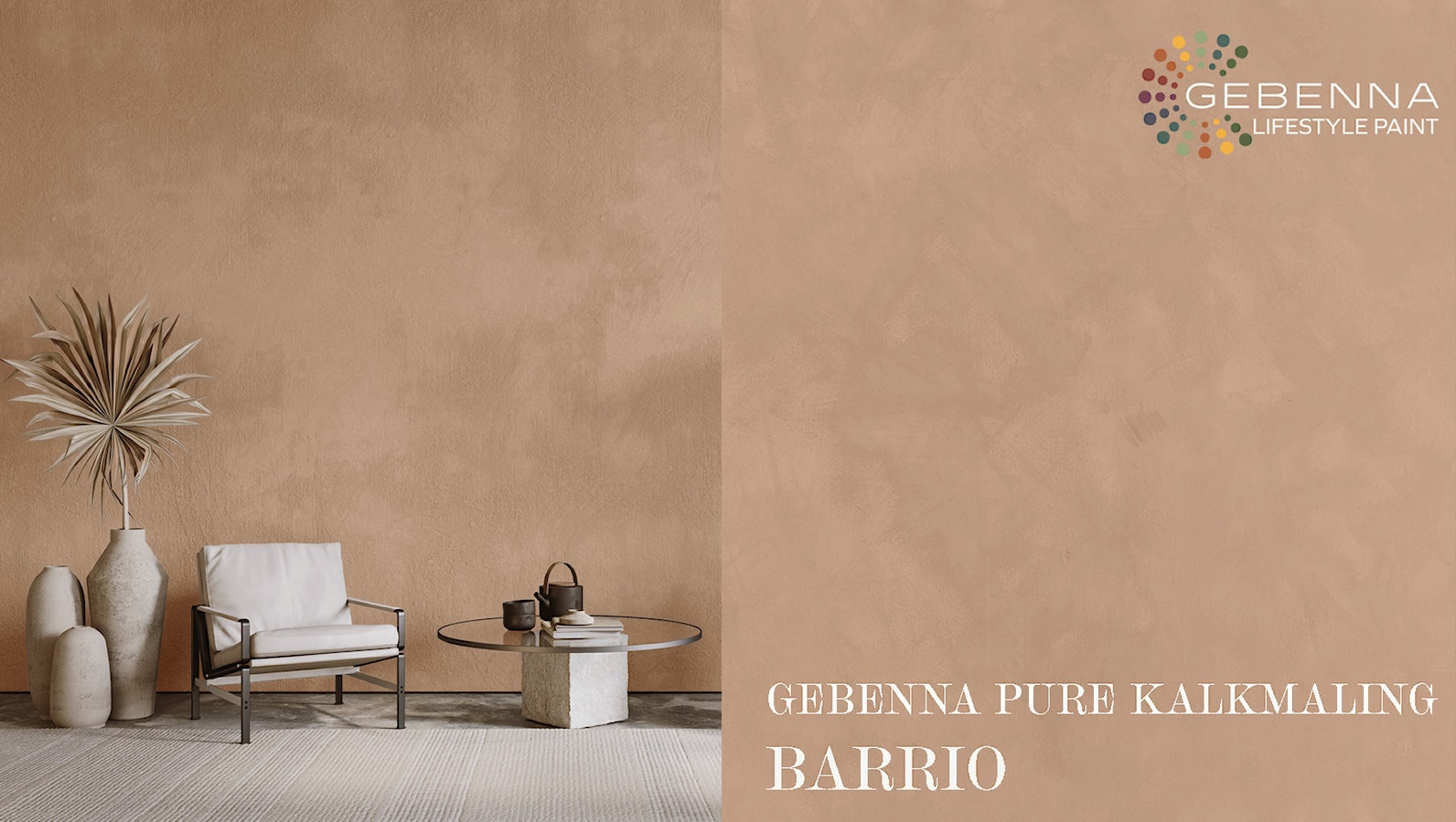 Inviter naturens farger inn med kalkmaling fra Gebenna. Kalkmalingen er produsert av naturlige materialer og skaper et vakkert, naturlig spill på veggen. Den myke og matte teksturen fremhever de naturlige elementene og skaper en følelse av trygghet, ro og balanse.