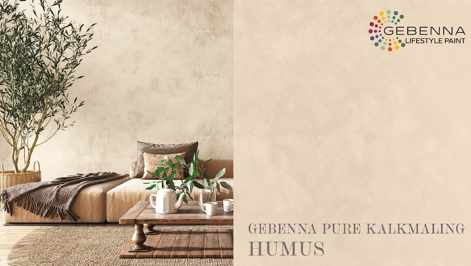 Inviter naturens farger inn med kalkmaling fra Gebenna. Kalkmalingen er produsert av naturlige materialer og skaper et vakkert, naturlig spill på veggen. Den myke og matte teksturen fremhever de naturlige elementene og skaper en følelse av trygghet, ro og balanse.