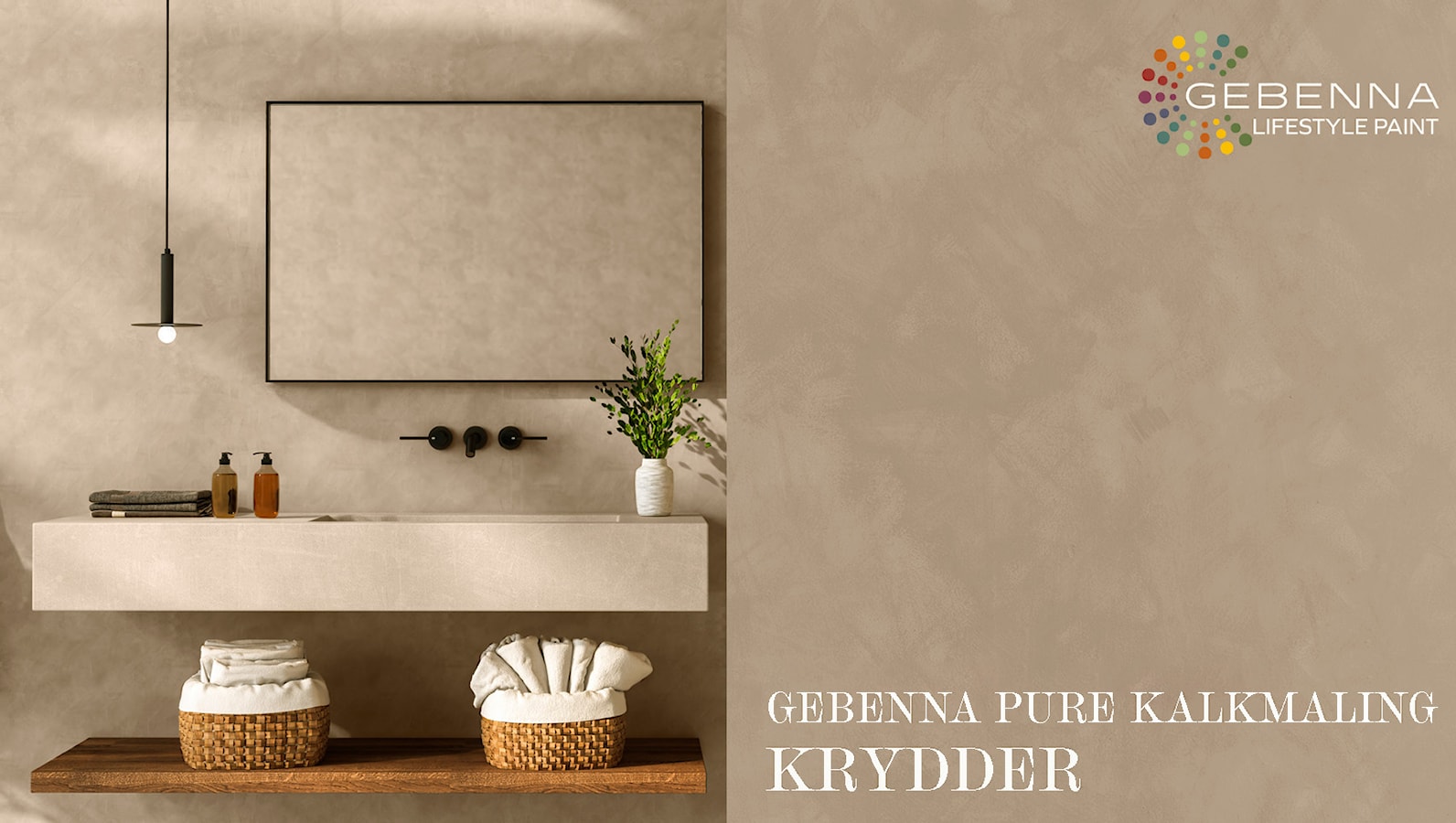 Inviter naturens farger inn med kalkmaling fra Gebenna. Kalkmalingen er produsert av naturlige materialer og skaper et vakkert, naturlig spill på veggen. Den myke og matte teksturen fremhever de naturlige elementene og skaper en følelse av trygghet, ro og balanse.