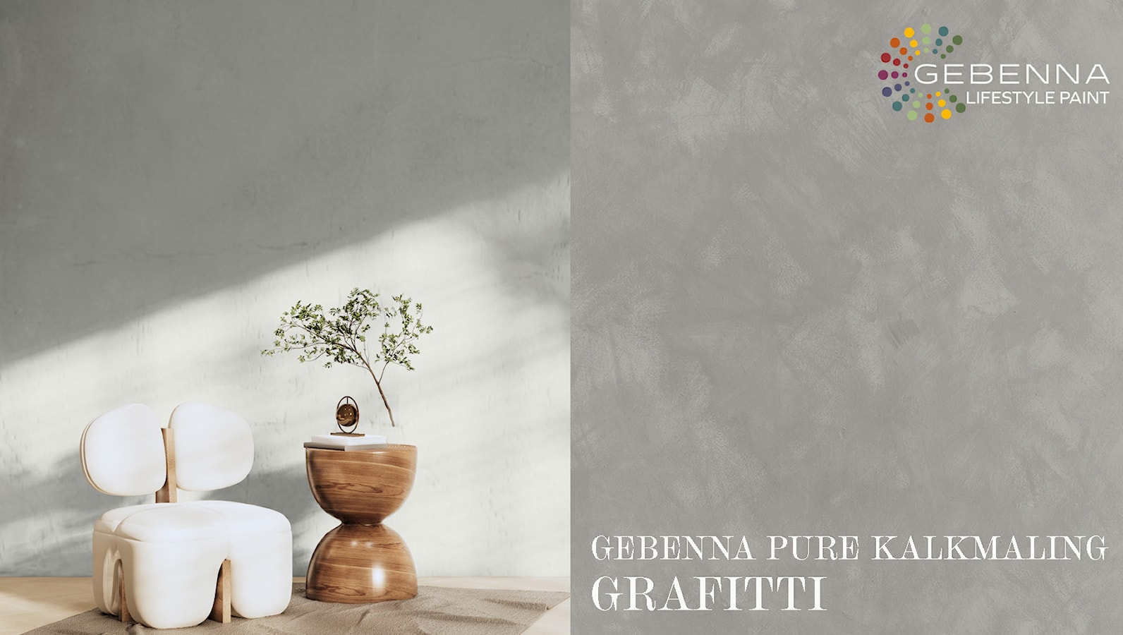 Inviter naturens farger inn med kalkmaling fra Gebenna. Kalkmalingen er produsert av naturlige materialer og skaper et vakkert, naturlig spill på veggen. Den myke og matte teksturen fremhever de naturlige elementene og skaper en følelse av trygghet, ro og balanse.