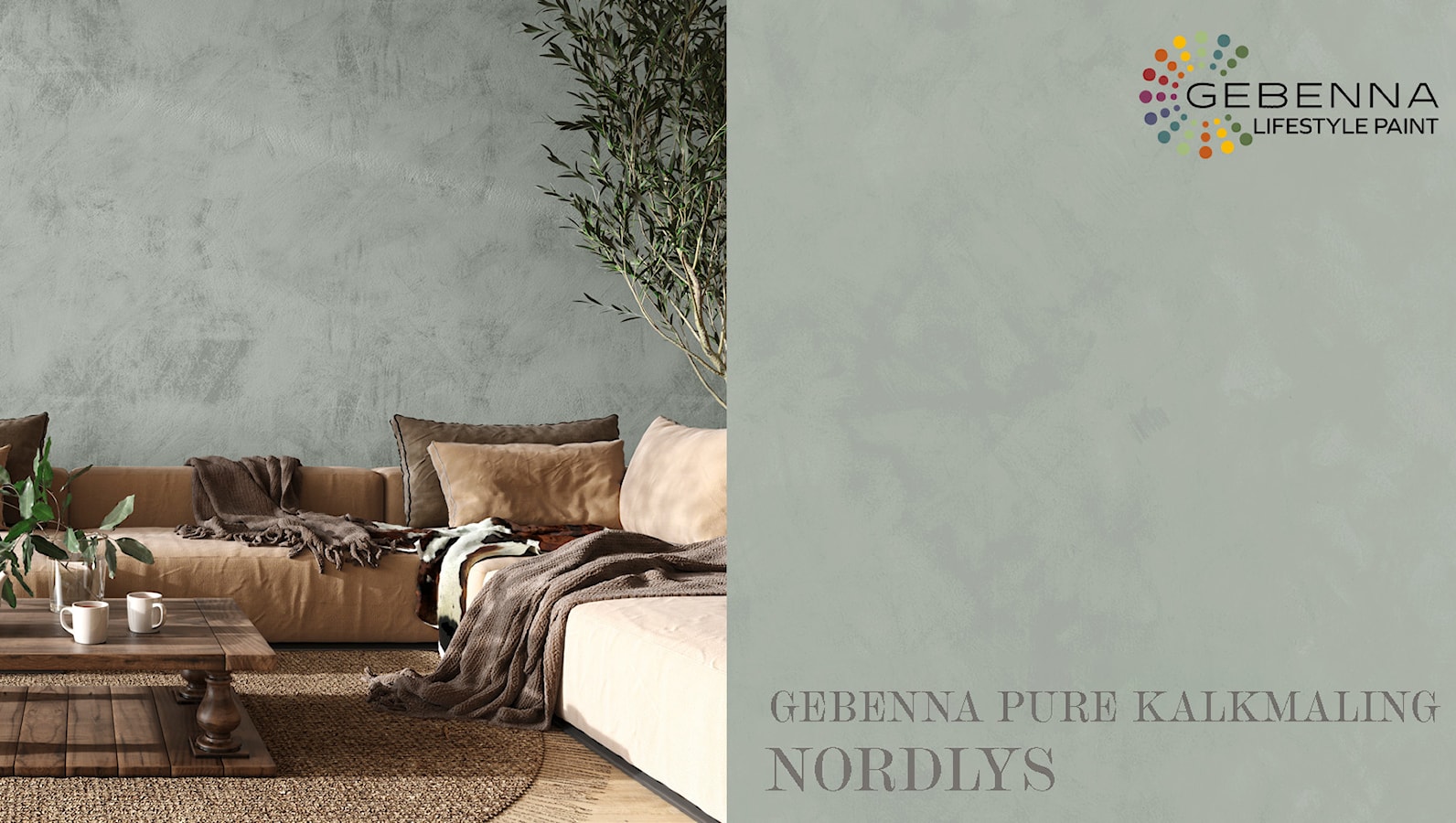 Inviter naturens farger inn med kalkmaling fra Gebenna. Kalkmalingen er produsert av naturlige materialer og skaper et vakkert, naturlig spill på veggen. Den myke og matte teksturen fremhever de naturlige elementene og skaper en følelse av trygghet, ro og balanse.