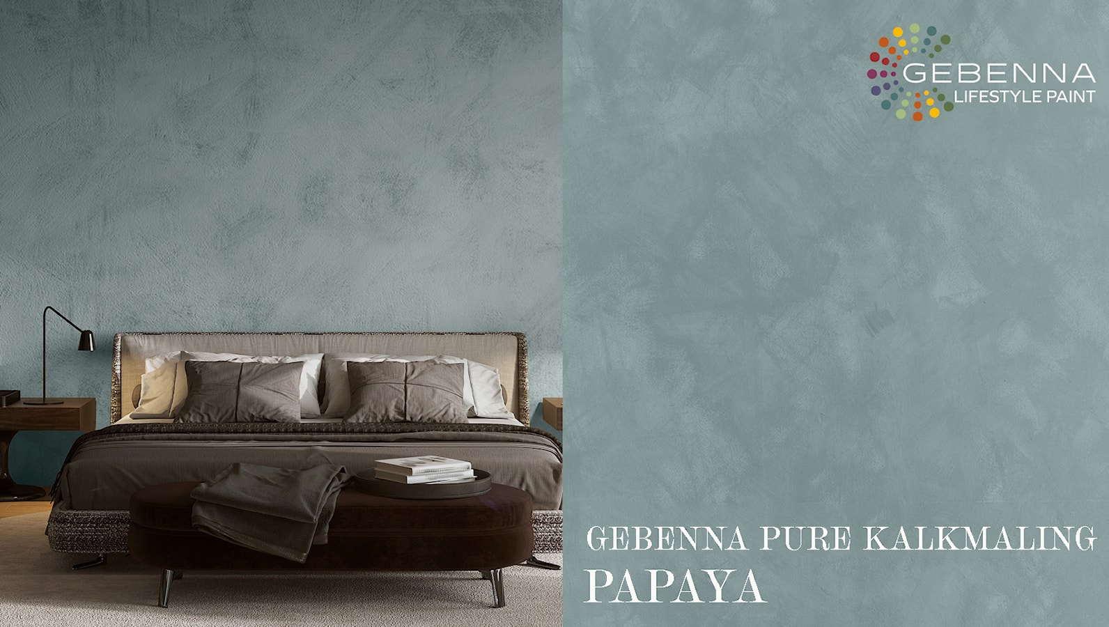 Den velbalanserte kombinasjonen av grønt og blått gjør Papaya til en av våre vakreste kalkmalingsfarger, da den er både behagelig og harmonisk å se på.