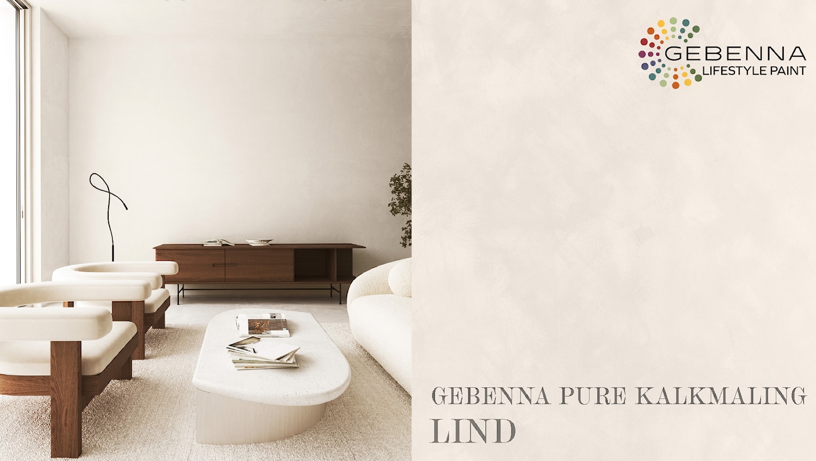 Inviter naturens farger inn med kalkmaling fra Gebenna. Kalkmalingen er produsert av naturlige materialer og skaper et vakkert, naturlig spill på veggen. Den myke og matte teksturen fremhever de naturlige elementene og skaper en følelse av trygghet, ro og balanse.