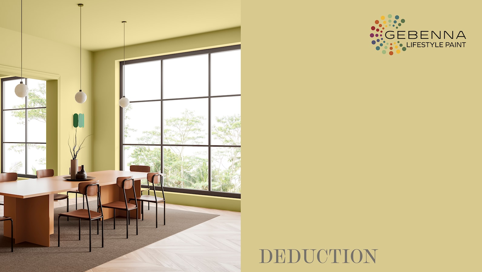 Deduction är en frisk och gulgrön väggfärg som ger rummet energi och ett samtida uttryck. Den mjuka nyansen för in en lätt och naturlig atmosfär – perfekt för kök, matplats eller vardagsrum där du vill skapa en levande men harmonisk miljö.