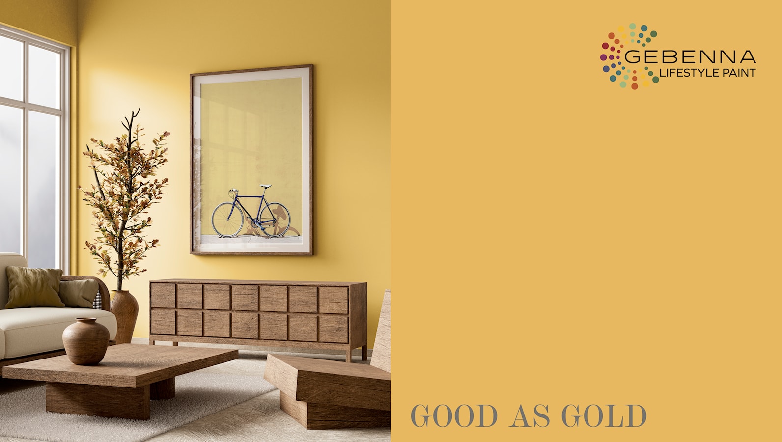 Good as Gold är en varm och gyllene gul väggfärg som för in solig glädje och jordnära elegans i hemmet. Kulören har en naturlig, mjuk lyster som skapar en inbjudande och harmonisk känsla – perfekt för dig som vill ge dina väggar liv och personlighet utan att det blir för starkt eller skarpt.
