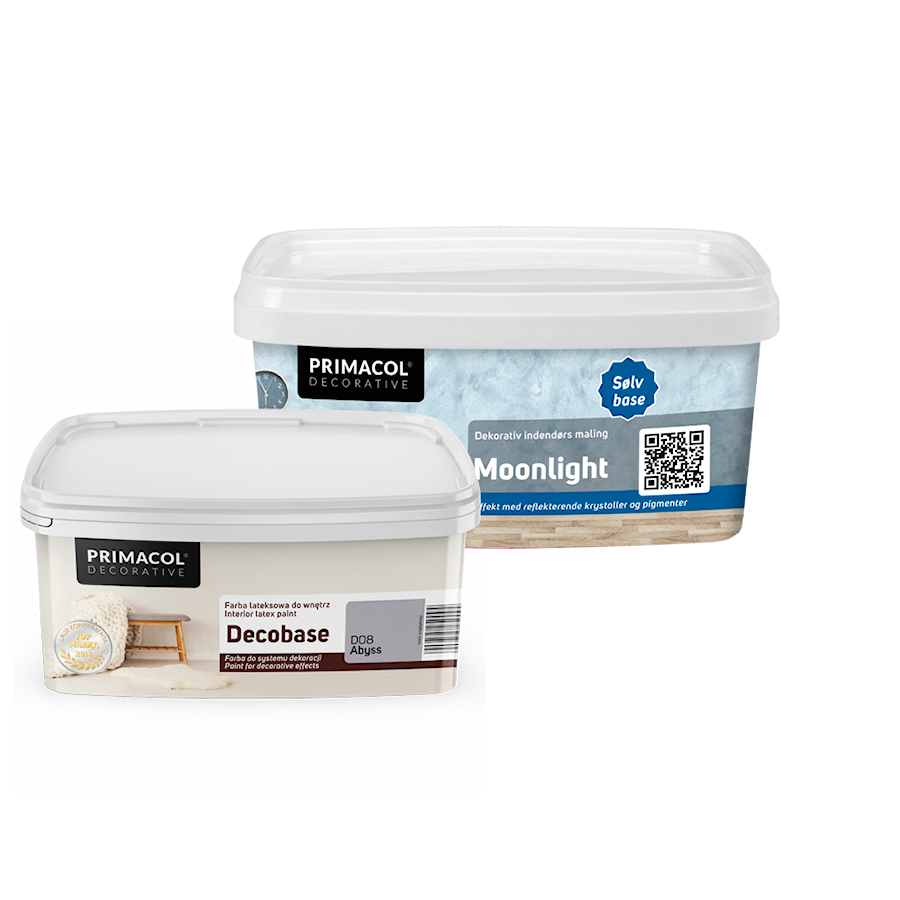 Primacol Moonlight Silverbase är genomskinlig vilket gör att den kan användas som topcoat på en vägg som tidigare målats med latexfärg, oavsett nyans. Genom att applicera Moonlight så uppdaterar du hemmets interiör på ett enkelt och snabbt sätt. Produkten är klar att användas och är vattenlöslig.